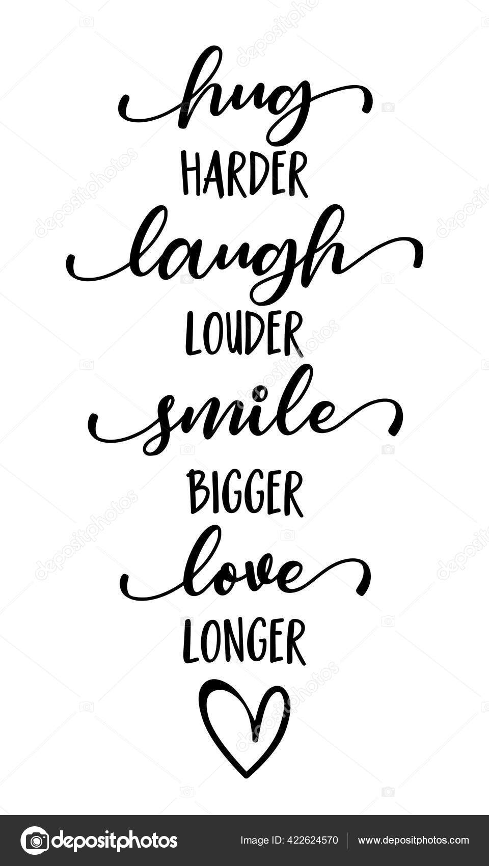 Hug Harder Laugh Louder Smile Bigger Love Longer Hand Drawn Stock