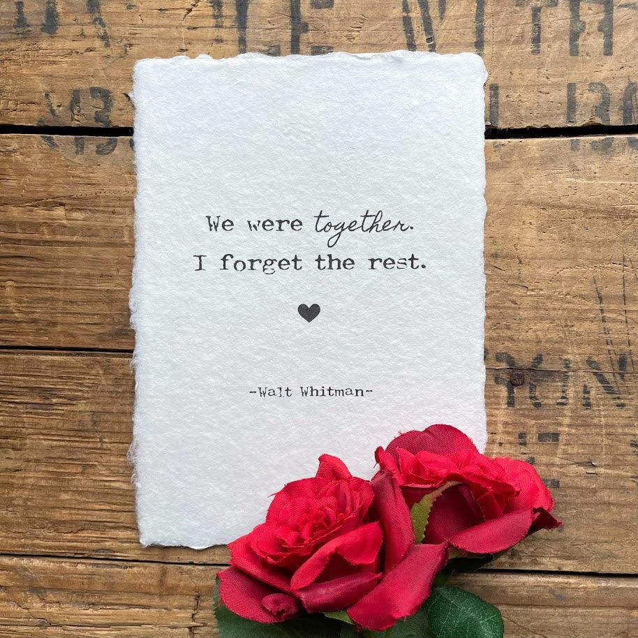We were together. I forget the rest. Walt Whitman quote print on