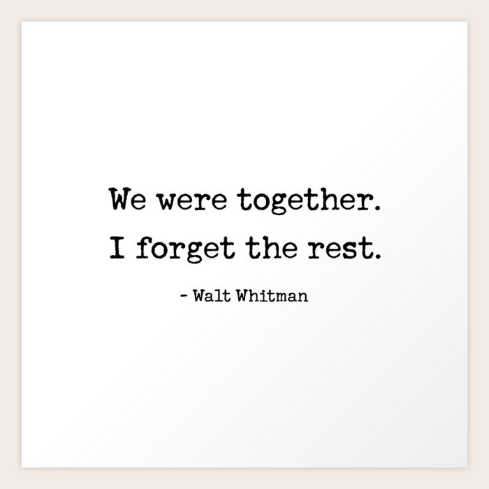 We were together. I forget the rest. Walt Whitman Quote. Art Print