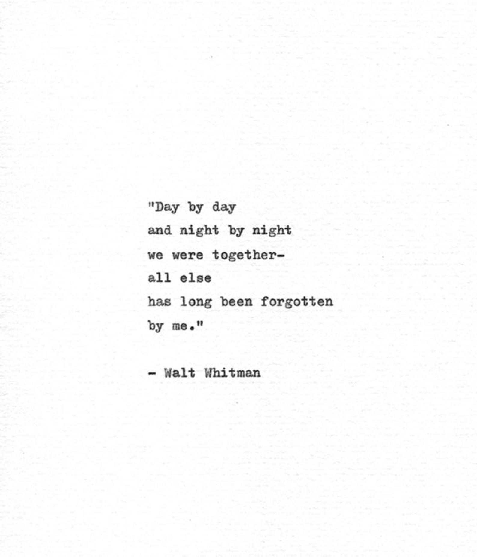 Walt Whitman We Were Together Quote We Were Together Quote Print Walt Whitman Love Poem Wall Art Print : T he appearance of Walt Whitman’s Leaves of Grass is something to be valued in Whitman’s work. He sings, “Muscle and pluck forever!” “We have had,” he declares, “ducking and deprecating . Share the love with these travel-themed captions for couples.Fact checked by Olivia YoungTravel nourishes a relationship in many ways. Discovering new cultures and encountering unfamiliar points of .